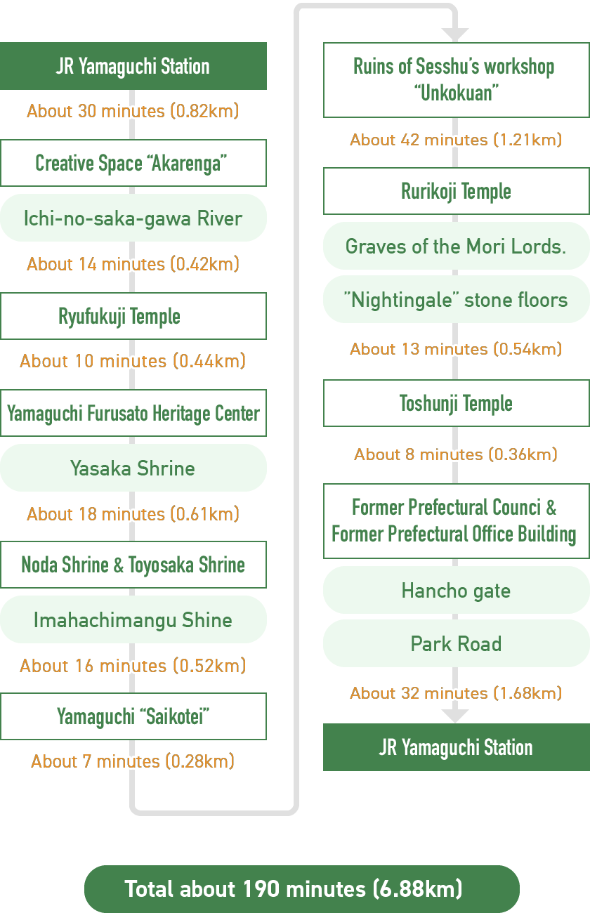 A 3-hour course incorporating history and culture beginning at JR Yamaguchi station(4-5 hours including lunch and a break)