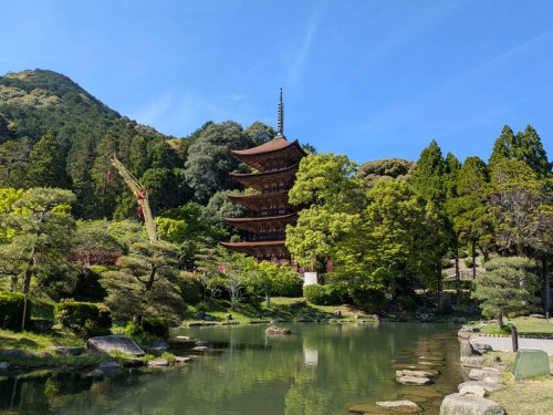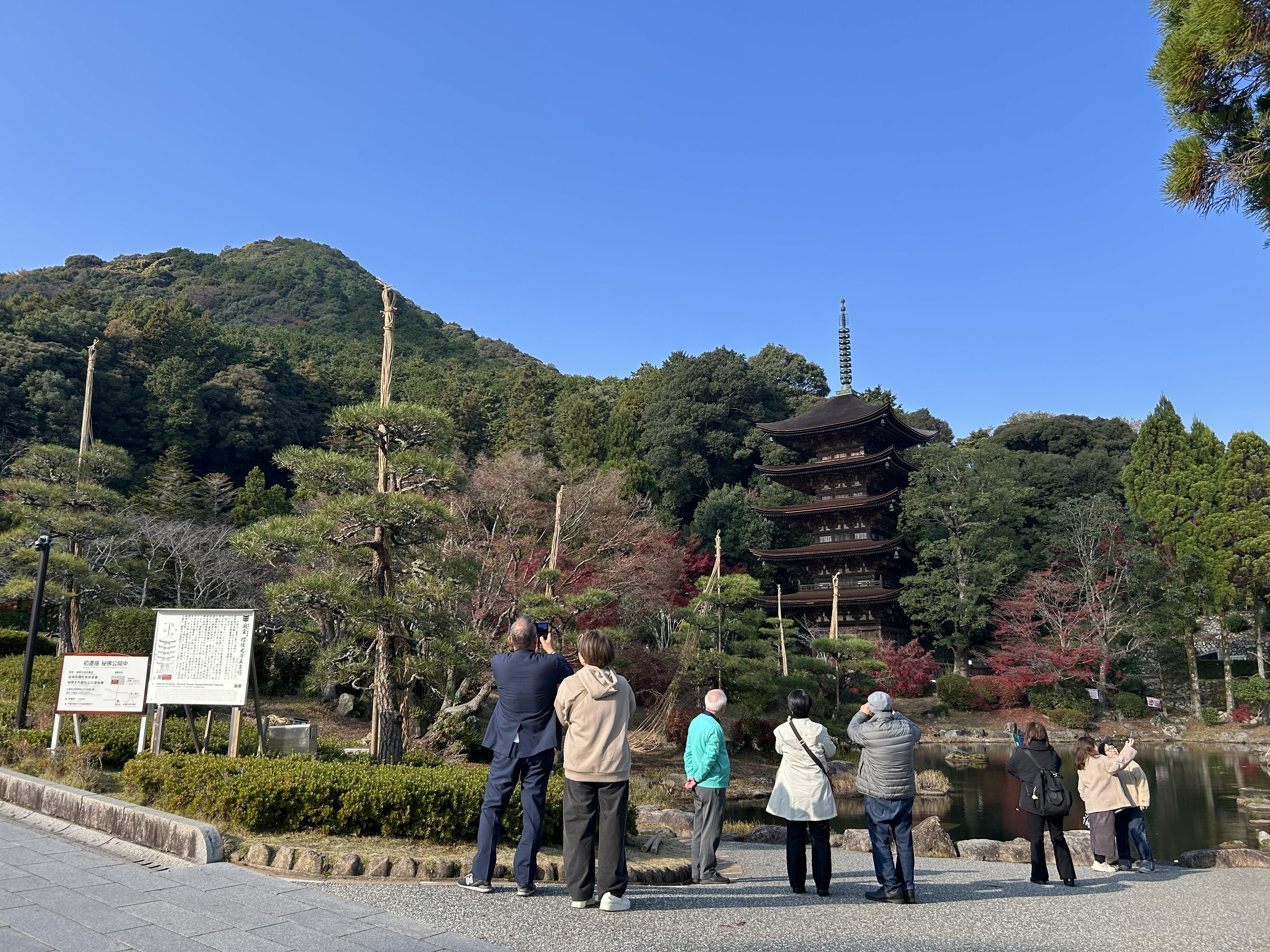 五重塔の檜皮葺屋根の葺き替え工事は無事に終わり、大囲いもとれて全容がご覧になれます。